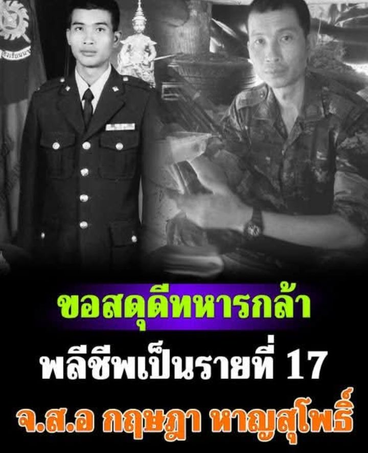 วันที่ 16 ธันวาคม 2568 เพจเฟซบุ๊กรายงานว่า Army Military Force ได้โพสต์ข้อความว่า ขอสดุดีทหารกล้าพลีชีพเป็นรายที่ 17 จ.ส.อ กฤษฎา หาญสุโพธิ์ (จ่าดูไบ) กองกำลังรบพื้นที่กองทัพภาคที่ 2 สังกัดกองพันทหารราบที่ 3 กรมทหารราบที่ 3 (ร.3 พัน 3) ค่ายพระยอดเมืองขวาง จ.นครพนม ไม่ได้เป็นนายสิบพยาบาลประจำ พัน.ร.11 เมื่อช่วงคํ่าเวลา 19:00น. ของวันที่ 15 ธันวาคม 2568 เขาได้พลีชีพระหว่างปฏิบัติหน้าที่ในพื้นที่สู้รบชายแดนไทย-กัมพูชา ขอสดุดีเหล่าทหารกล้า ผู้สละชีพเพื่อปกป้องแผ่นดินไทยและความปลอดภัยของประชาชน