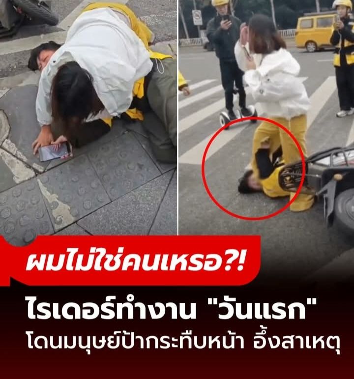 สะเทือนใจ! ไรเดอร์หนุ่มทำงาน “วันแรก” โดนมนุษย์ป้าเมาแอ๋ตบ-กระทืบหน้าระบายอารมณ์ ปล่อยโฮถาม “ผมไม่ใช่คนเหรอ?”